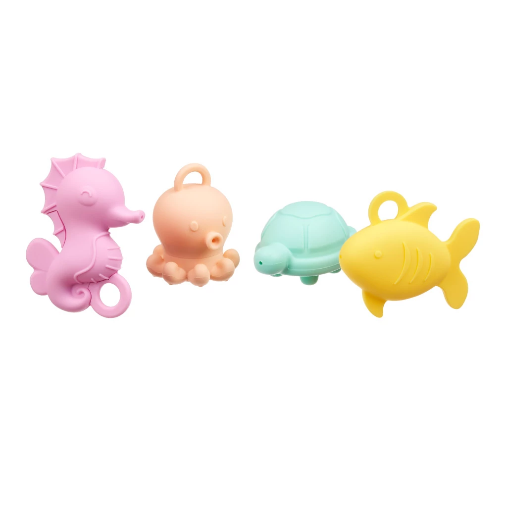 A nyitható fürdőjátékok – a tenger mélyének lakói ihlették (hal, polip, teknős és csikóhal) – ötvözik a modern dizájnt a tudatos szülők által elvárt funkcionalitással
