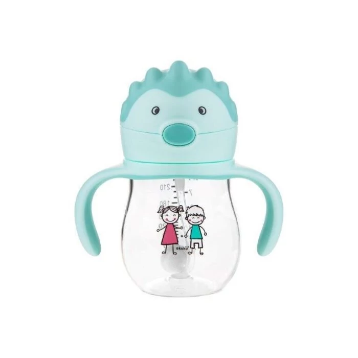 Az AKUKU nem-csöpögő, súlyozott szívószálas tanulópohár a szülők és gyerekek kedvence. A pohár különleges tervezése lehetővé teszi, hogy a gyermekek bármilyen szögben igyanak, anélkül, hogy kiömlene a folyadék. Ez a funkció különösen hasznos, amikor a kicsik még csak most sajátítják el az önálló ivás képességét. Nagyon praktikus a fogantyú, hisz a kisebbek még nem tudják nélküle rendesen megfogni a poharat, így viszont könnyedén megoldják. A szívószálban elhelyezett súly mindig a folyadék szintjén marad, így a gyerekek könnyedén hozzájutnak a kedvenc italukhoz, függetlenül attól, hogyan tartják a poharat.