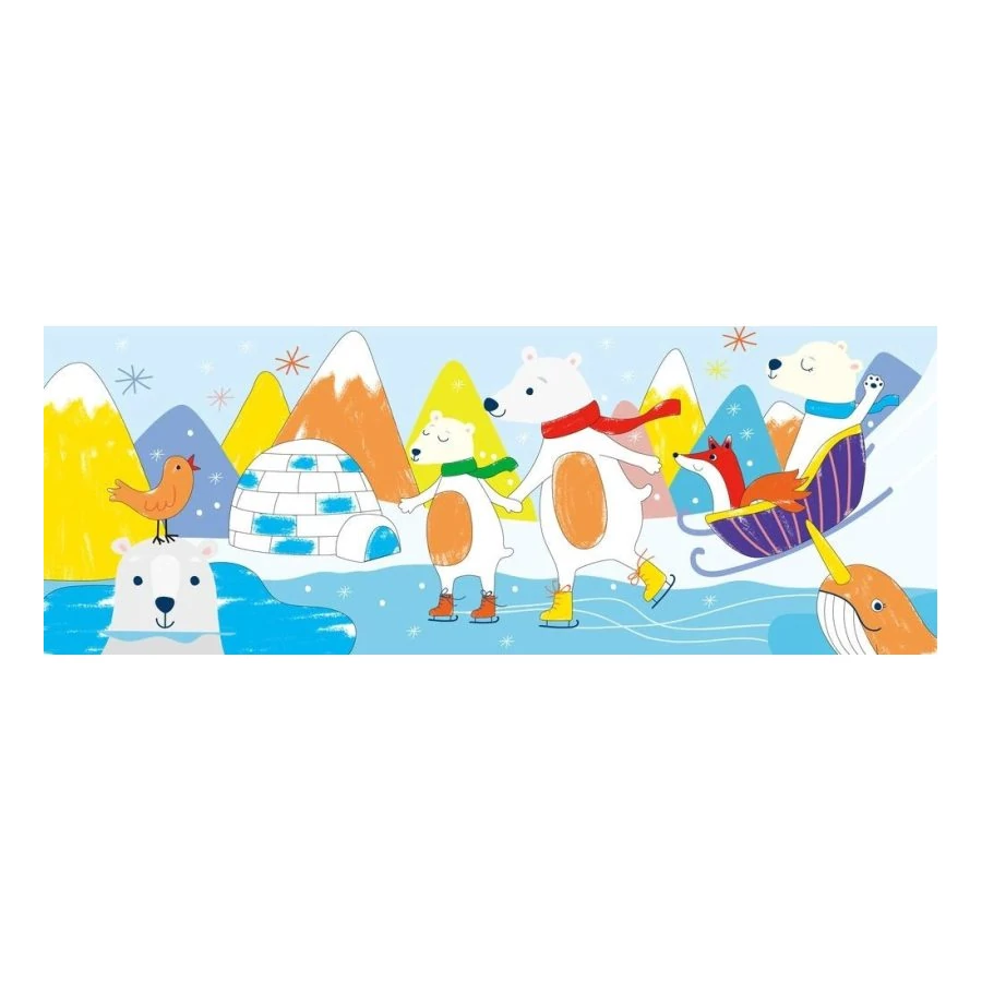 Méretéből adódóan egyszerre akár több gyerkőc is a kép köré ülhet és alkothat, így segítheti a szociális készségek fejlődését. A készlet segíti a finommotoros készségek fejlődését, a szín-és formafelismerést, valamint az alkotás örömét. Az élénk színek és az izgalmas jegesmacis motívum erős vizuális inger, ami fenntartja az érdeklődést és játékossá teszi az alkotást.