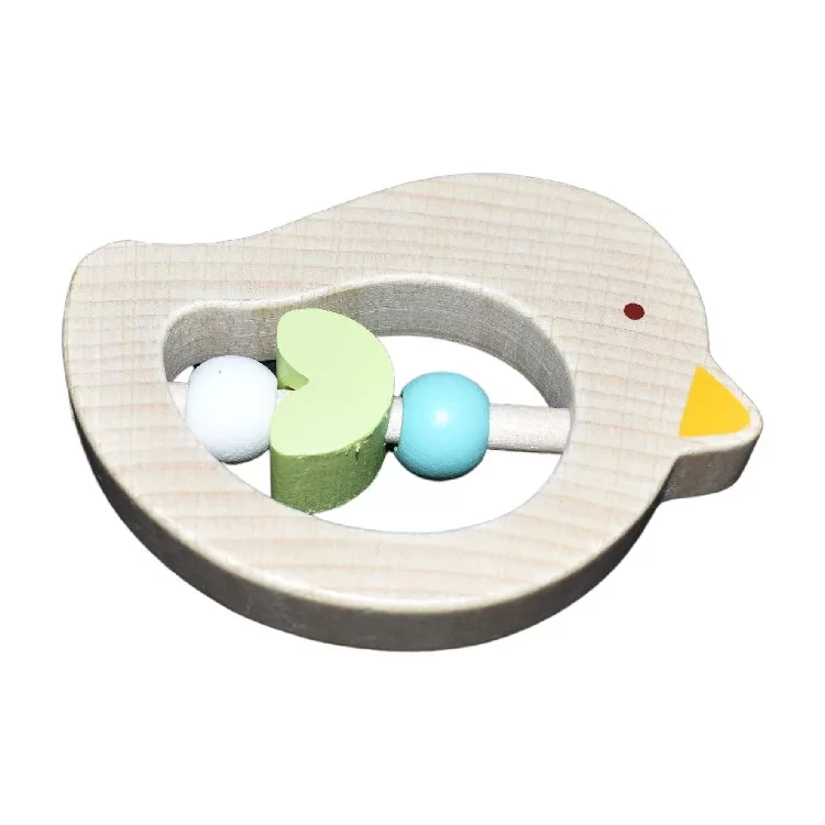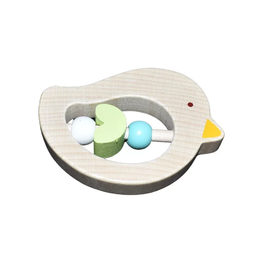 Minőségi fából készült natúr csibe formájú csörgő. Méretének és kialakításának köszönhetően könnyen kézbe tudják venni már a legkisebbek is. A diszítőelemként szolgáló golyócskák mozgathatóak, amelyek garantáltan lekötik majd a babák figyelmét. A játék fejleszti a babák finommotorikus készségét, valamint a tapintás-és hallás érzékelését.