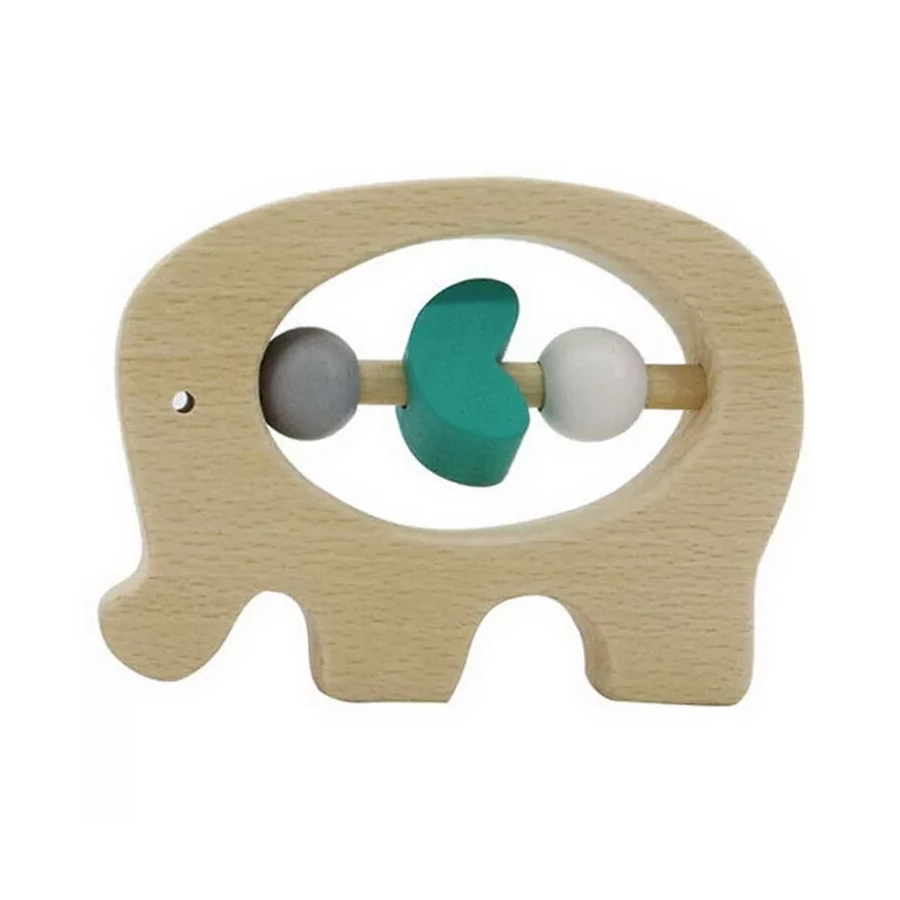 Minőségi fából készült natúr elefánt formájú csörgő. Méretének és kialakításának köszönhetően könnyen kézbe tudják venni már a legkisebbek is. A diszítőelemként szolgáló golyócskák mozgathatóak, amelyek garantáltan lekötik majd a babák figyelmét. A játék fejleszti a babák finommotorikus készségét, valamint a tapintás-és hallás érzékelését.