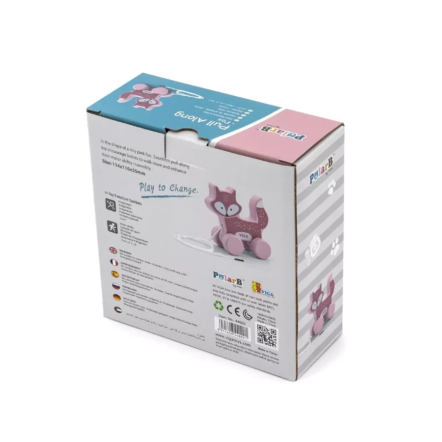 Ez a fából készült gurulós kis róka tökéletes játszótárs a kisgyermekek számára, különösen a járni tanulók és totyogók számára. A róka elején rögzített madzag lehetővé teszi, hogy a gyerekek maguk után húzzák a játékot, ami izgalmasabbá és interaktívabbá teszi a játékélményt. A húzogatás közben a gyerekek nemcsak szórakoznak, hanem aktívan mozognak is, ami elősegíti a fizikai fejlődést és a mozgáskoordináció javulását. Mindenhová magukkal tudják vinni a rókájukat.