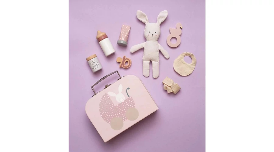 Minden gyerkőc szereti az állatokat, így biztosan ezt a készletet is imádni fogja gyermeked! A nyuszi egy praktikus, könnyen hordozható, rózsaszínű kartontáskában érkezik, sok vidám kiegészítővel. A készlet lehetővé teszi, hogy a gyermek gondoskodjon a nyusziról, ami így egy szuper szerepjáték lesz, ami fejleszti a verbális és szociális készségeket.. Mostantól úgy bánhat gyermeked a kis nyuszival, mintha egy igazi kisbaba lenne. Az előkét felrakva megetetheti vagy akár a pelusát is kicserélheti. Amikor eljön az alvás ideje, a kis nyuszi még a cumiját is megkaphatja!