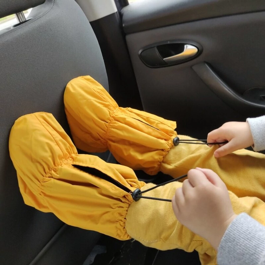 Ne ebben sétáljon gyermeked, mert a lábzsák anyaga nem rendelkezik olyan tulajdonságokkal, mint egy cipőtalp, csúszhat, és nem is eléggé kopásálló. Ez a termék nem a cipőt védi a sártól, hanem a saras cipőtől az esetlegesen koszolódó kabátot, autó-üléstámlát és a felnőttek idegeit.
