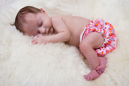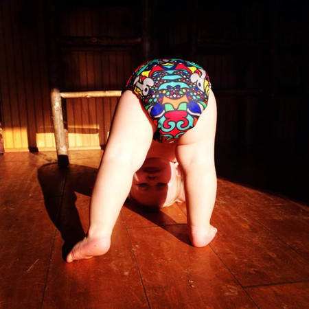 Végezetül itt egy cuki, mozgásában nem hátráltatott baba Smart Bottoms mosható pelenkában: