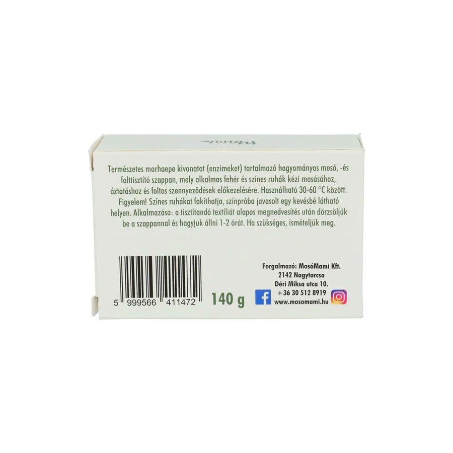 Kitűnően habzó, kiadós szappantömb a klasszikus enzimekkel (marhaepe kivonattal), mely hatékonyan távolítja el a makacs foltokat és szépen fehéríti a szürkült, sárgult fehér ruhaneműt. * a szappan gyártási súlya 150 g. Ezt mi öko papírdoboz csomagolásba tesszük, ezért hetek alatt nagyjából 145-142 g-ra szárad, mely az aktív anyagot egyáltalán nem érinti! Csupán víz párolog a tömbből, mint minden szappanból. Ez a gyakorlatban azt jelenti, hogy jobban meg kell vizezni majd, hogy felhabozzon.